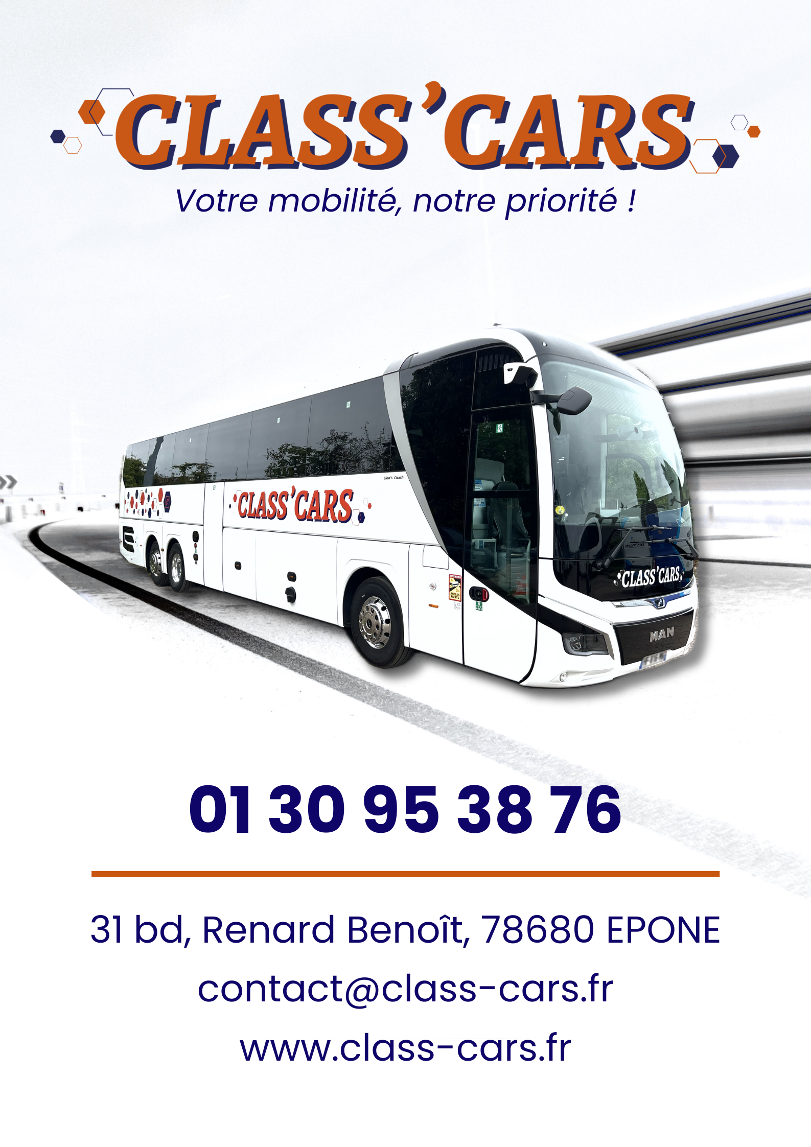 expérimentés, un accompagnement personnalisé et un sens du service irréprochable, nous transformons chaque déplacement en une véritable expérience de voyage. En groupe, en famille, entre amis ou pour des clubs et associations, Class’Cars vous emmène là où vos envies vous mènent en toute sécurité et dans les meilleures conditions.